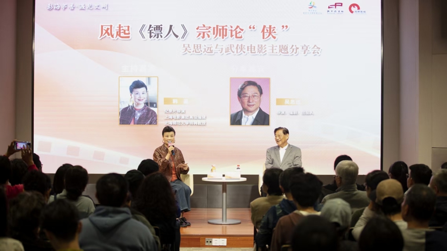 第18期“影海书香”活动近日在上海浦东图书馆举行,著名导演、编剧、出品人吴思远,应总台央视纪录频道《超级装备》《科举》总导演、“影海书香”策划人韩晶之邀,以“风起《镖人》,宗师论‘侠’”为主题,与现场读者分享跨越半个世纪的香港武侠电影传奇。
